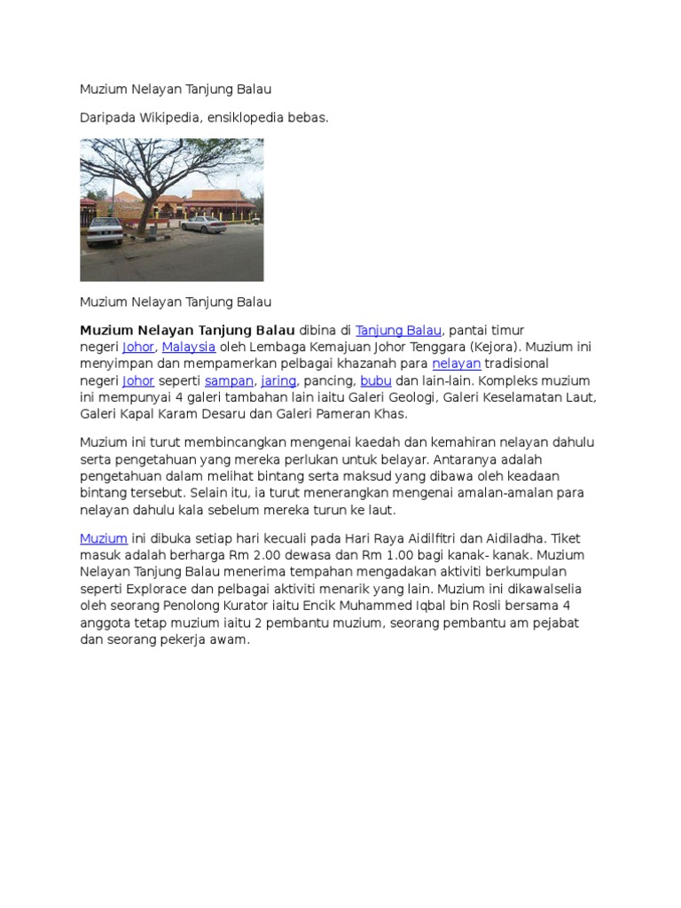 Muzium nelayan tanjung balau jalan tanjung balau, tanjung balau 81930, malesia. Kami ingin sentiasa dekat dengan anda! Dengan muzium nelayan tanjung balau. The tanjung balau fishermen museum malay muzium nelayan tanjung balau is a museum in tanjung balau kota tinggi district johor malaysia about fishermen. Dibagunkan di sekitar tanjung balau dan wilayah kejora.